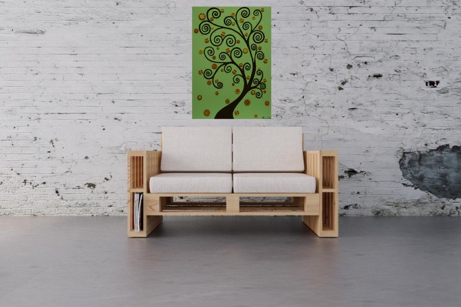 L’albero e gli altri elementi che costituiscono il quadro sono in rilievo. Per questo e per lo spessore della tela (3,8 cm) il quadro non necessita di cornice.