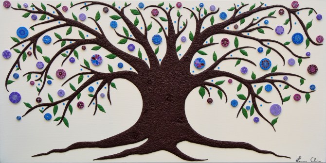 L’albero e gli altri elementi che costituiscono il quadro sono in rilievo. Per questo e per lo spessore della tela (3,8 cm) il quadro non necessita di cornice.