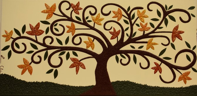 L’albero e gli altri elementi che costituiscono il quadro sono in rilievo. Per questo e per lo spessore della tela (3,8 cm) il quadro non necessita di cornice.