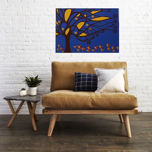L’albero e gli altri elementi che costituiscono il quadro sono in rilievo. Per questo e per lo spessore della tela (3,8 cm) il quadro non necessita di cornice.