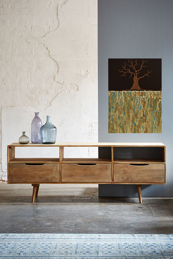 L’albero e gli altri elementi che costituiscono il quadro sono in rilievo. Per questo e per lo spessore della tela (3,8 cm) il quadro non necessita di cornice.