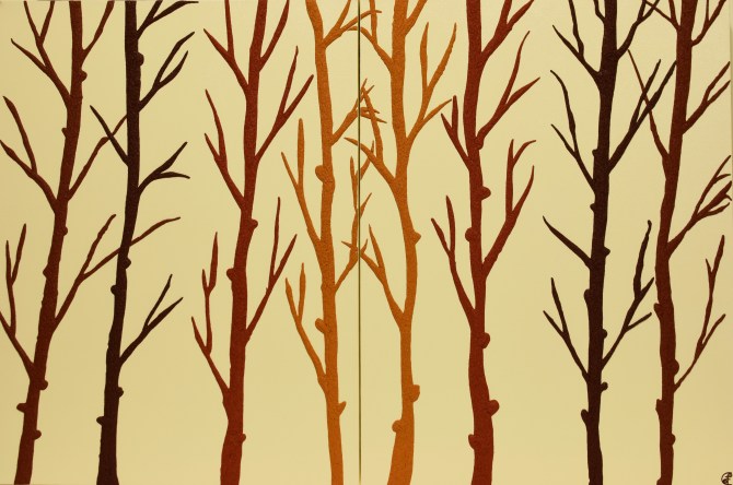 Gli alberi sono in rilievo. Per questo e per lo spessore della tela (3,8 cm) il quadro non necessita di cornice.