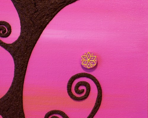 L’albero e gli altri elementi che costituiscono il quadro sono in rilievo. Per questo e per lo spessore della tela (3,8 cm) il quadro non necessita di cornice.