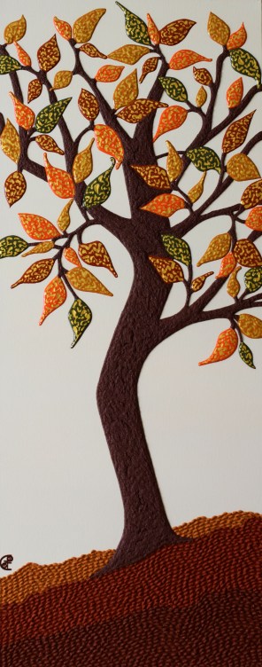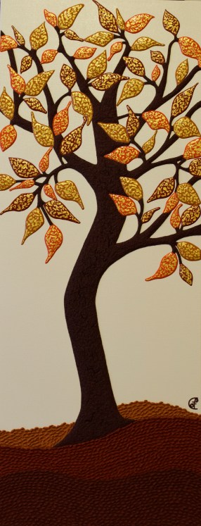 L’albero e gli altri elementi che costituiscono il quadro sono in rilievo. Per questo e per lo spessore della tela (3,8 cm) il quadro non necessita di cornice.