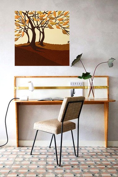 L’albero e gli altri elementi che costituiscono il quadro sono in rilievo. Per questo e per lo spessore della tela (3,8 cm) il quadro non necessita di cornice.