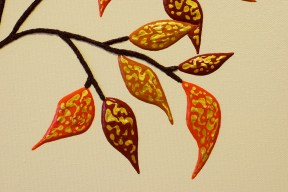 L’albero e gli altri elementi che costituiscono il quadro sono in rilievo. Per questo e per lo spessore della tela (3,8 cm) il quadro non necessita di cornice.