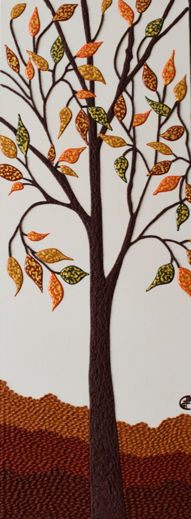 L’albero e gli altri elementi che costituiscono il quadro sono in rilievo . Per questo e per lo spessore della tela (3,8 cm) il quadro non necessita di cornice.