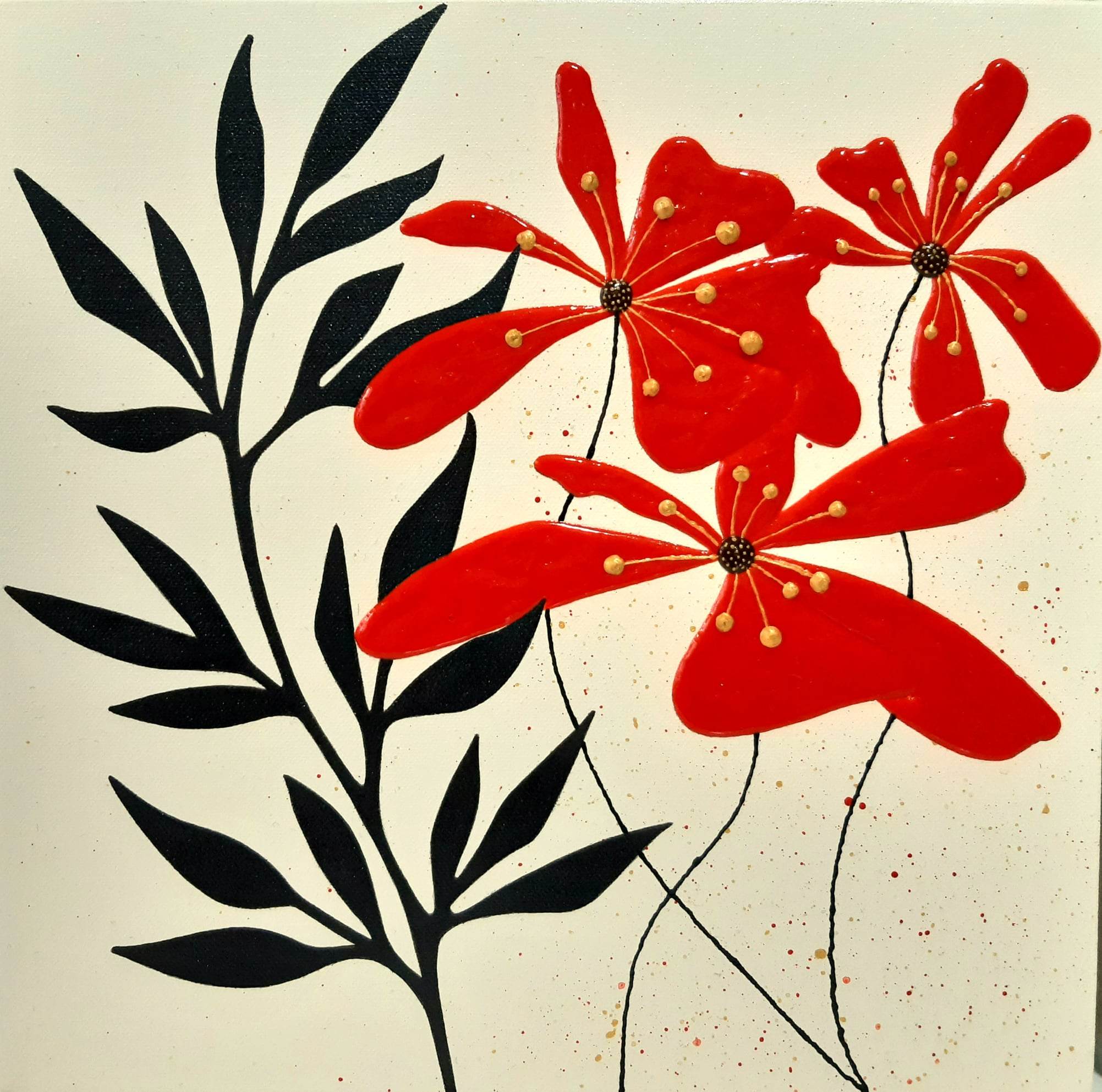 The flowers are in relief. For this and for the thickness of the canvas (3.5 cm) the pictures do not need a frame.