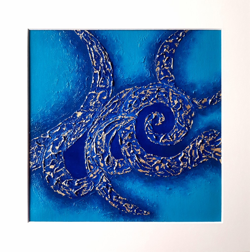 Materiali: tecnica mista (acrilico, pastelli ad olio, foglia oro, paste a rilievo).